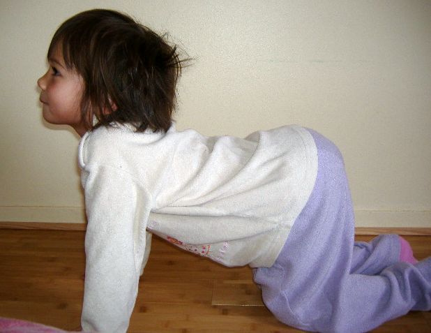 chat est une position basique du yoga très appréciée des petits parce qu'elle reproduit les mouvement d'un chat qui s'étire après une longue sieste. Cette position assouplit bien la colonne vertébrale.